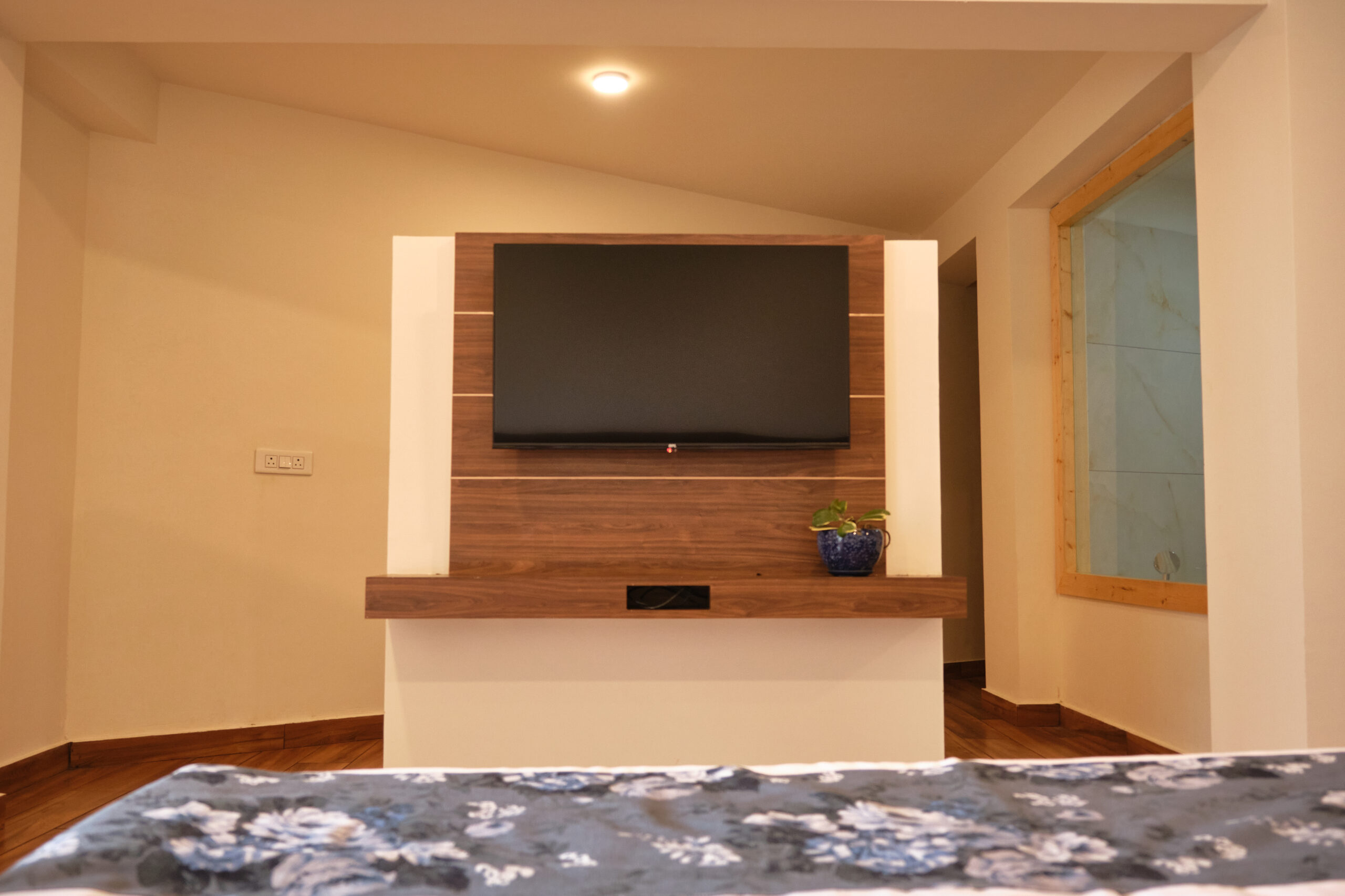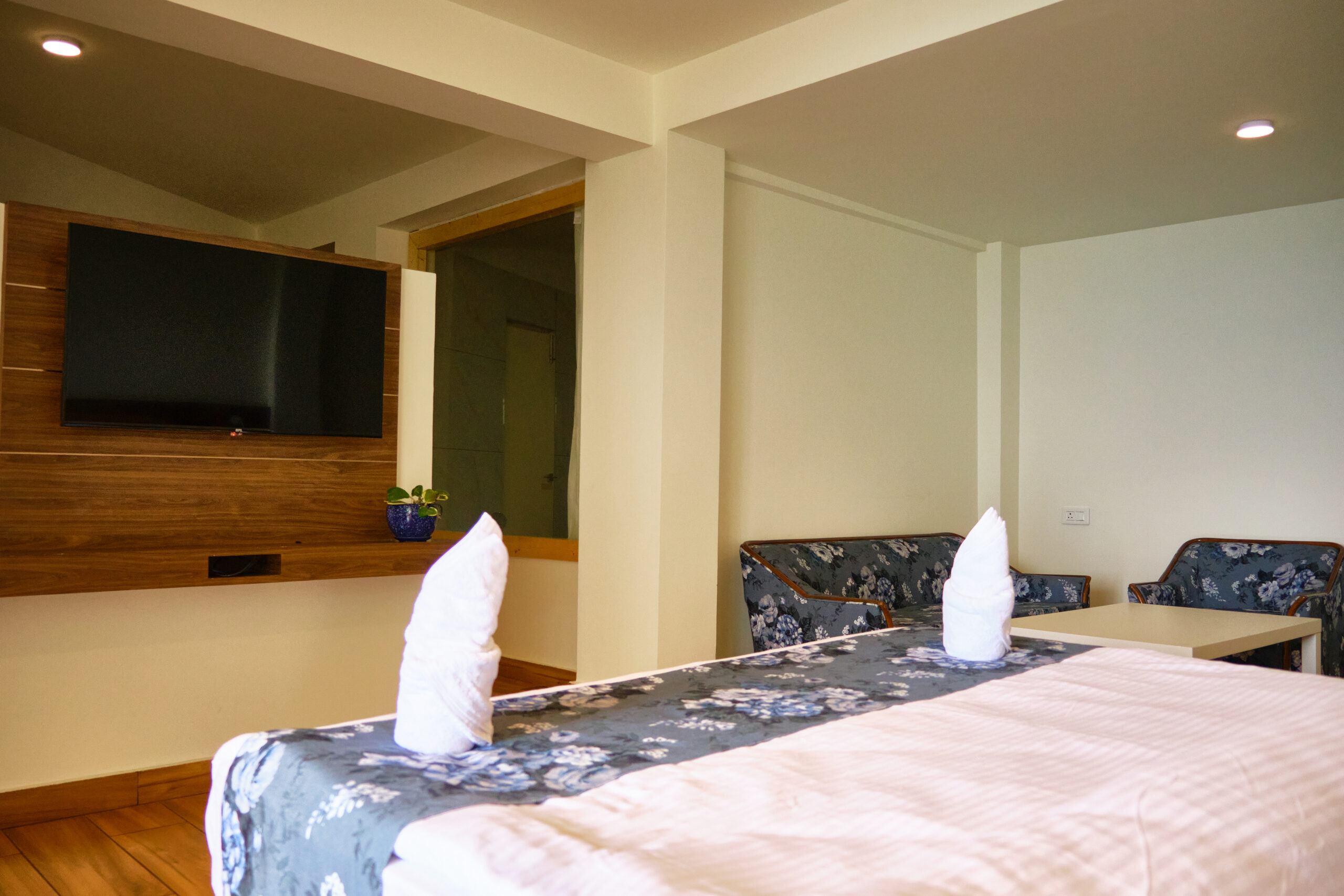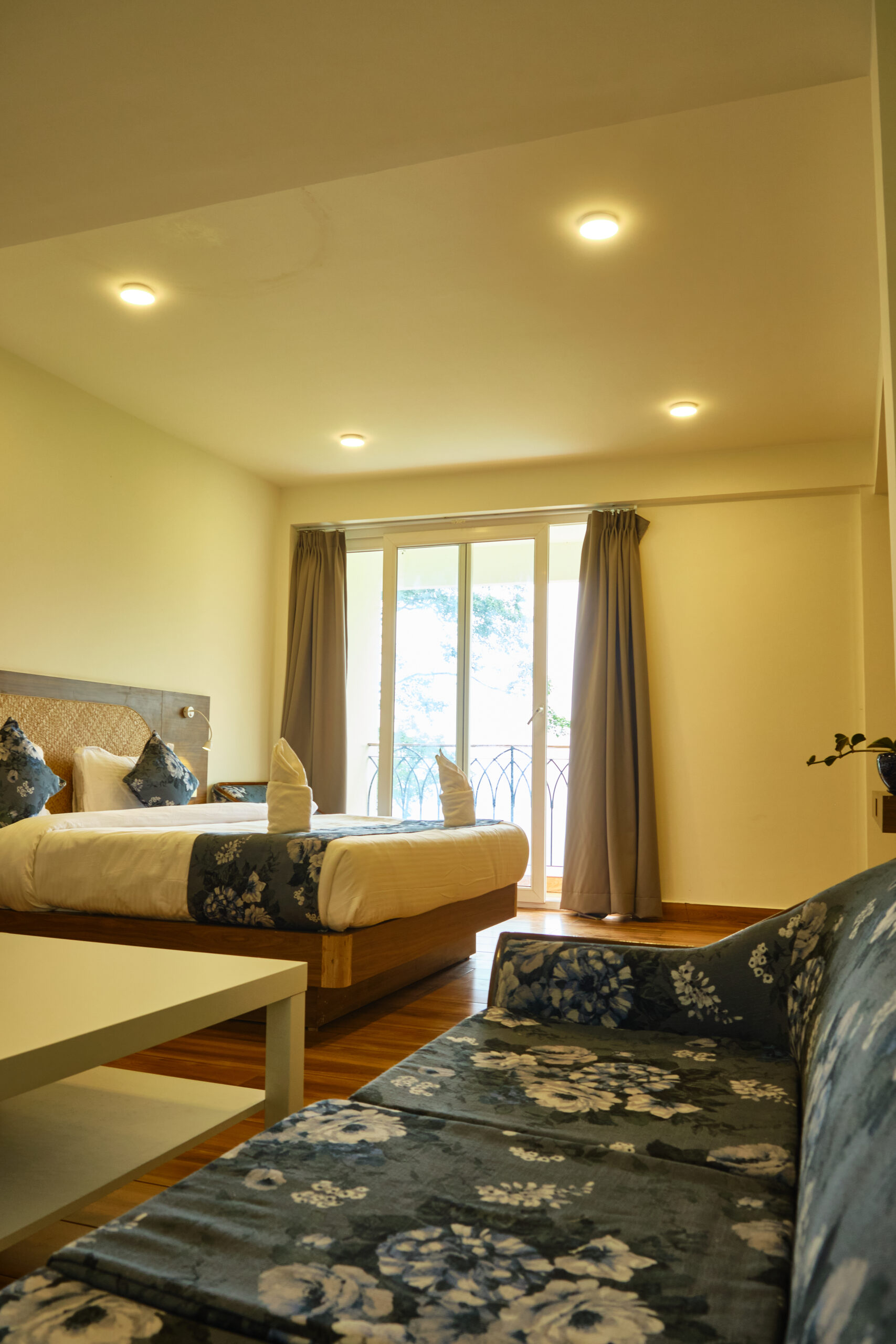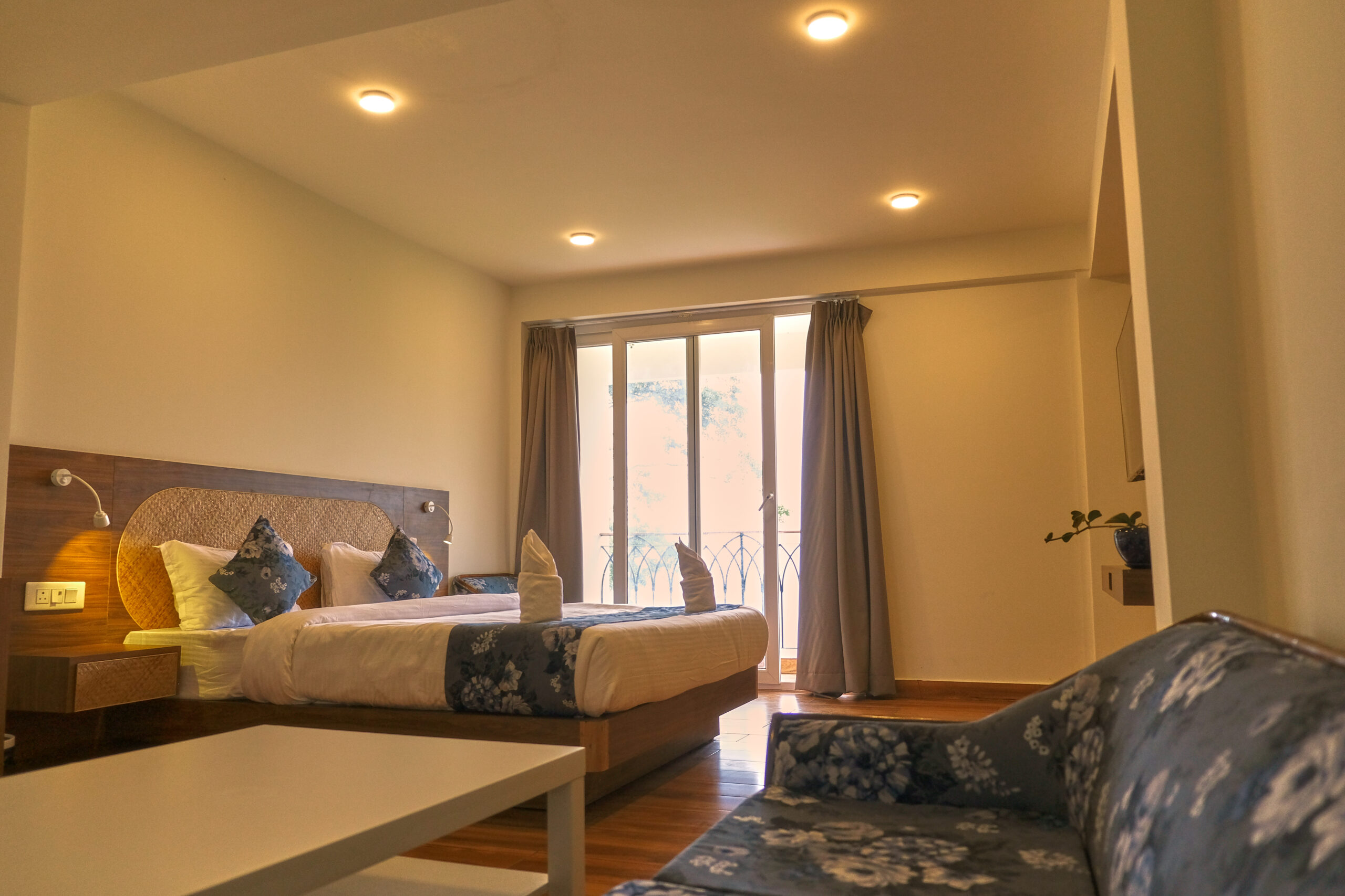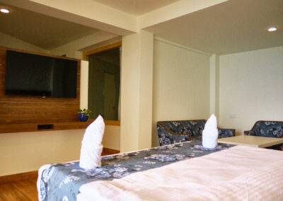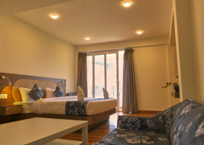At Kunjham Retreat, our luxurious suites offer the perfect blend of comfort and elegance. Each suite features spacious interiors adorned with local art and warm, inviting decor. Enjoy stunning mountain views from your private balcony, where you can unwind with a morning coffee or an evening drink.